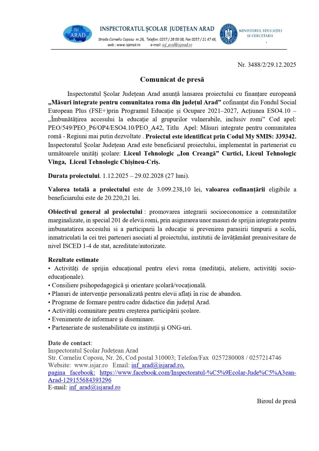Proiect PEO 339342 - PROIECTE EUROPENE ARAD